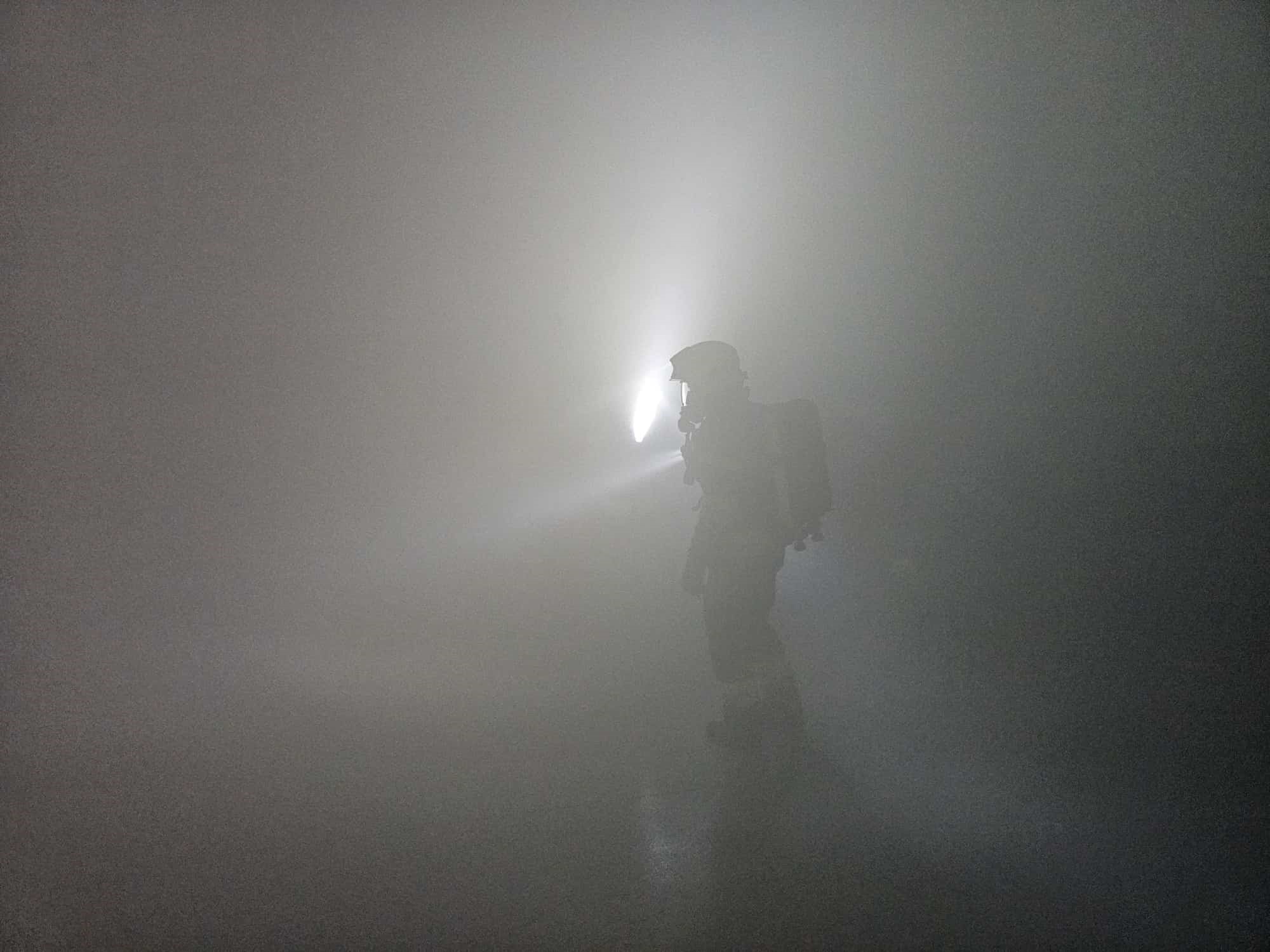 Den Abschluss bildete eine anspruchsvolle Übung, bei der die Fahrzeughalle der Freiwilligen Feuerwehr vollständig abgedunkelt und mit Übungsrauch gefüllt wurde. Dadurch konnten die Einsatzkräfte ein Szenario simulieren, das den Bedingungen eines tatsächlichen Tunneleinsatzes sehr nahekommt.